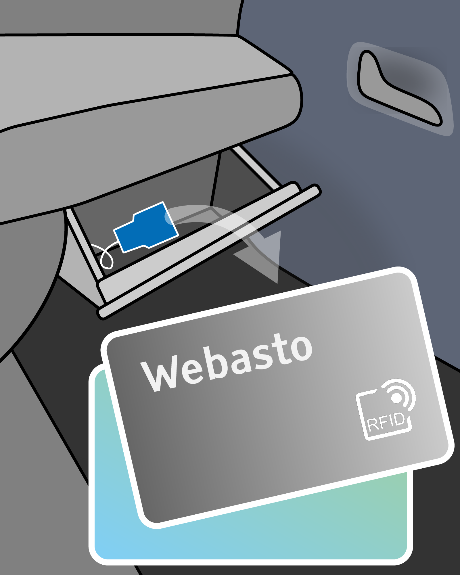 6) Halte die Webasto-Ladekarte vor das RFID-Feld. Der LED-Ring leuchtet zuerst grün und blinkt dann blau, wenn der Ladevorgang beginnt.