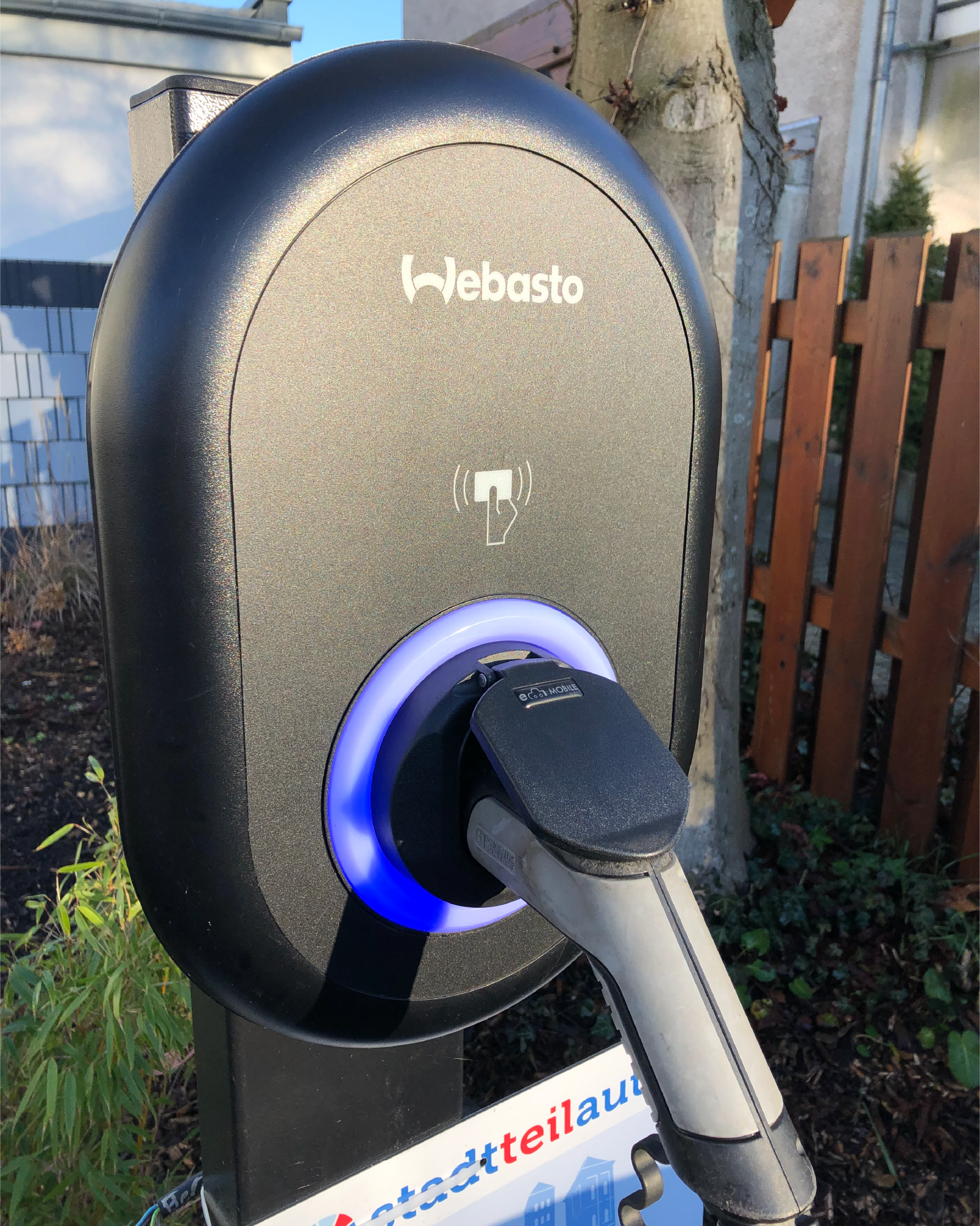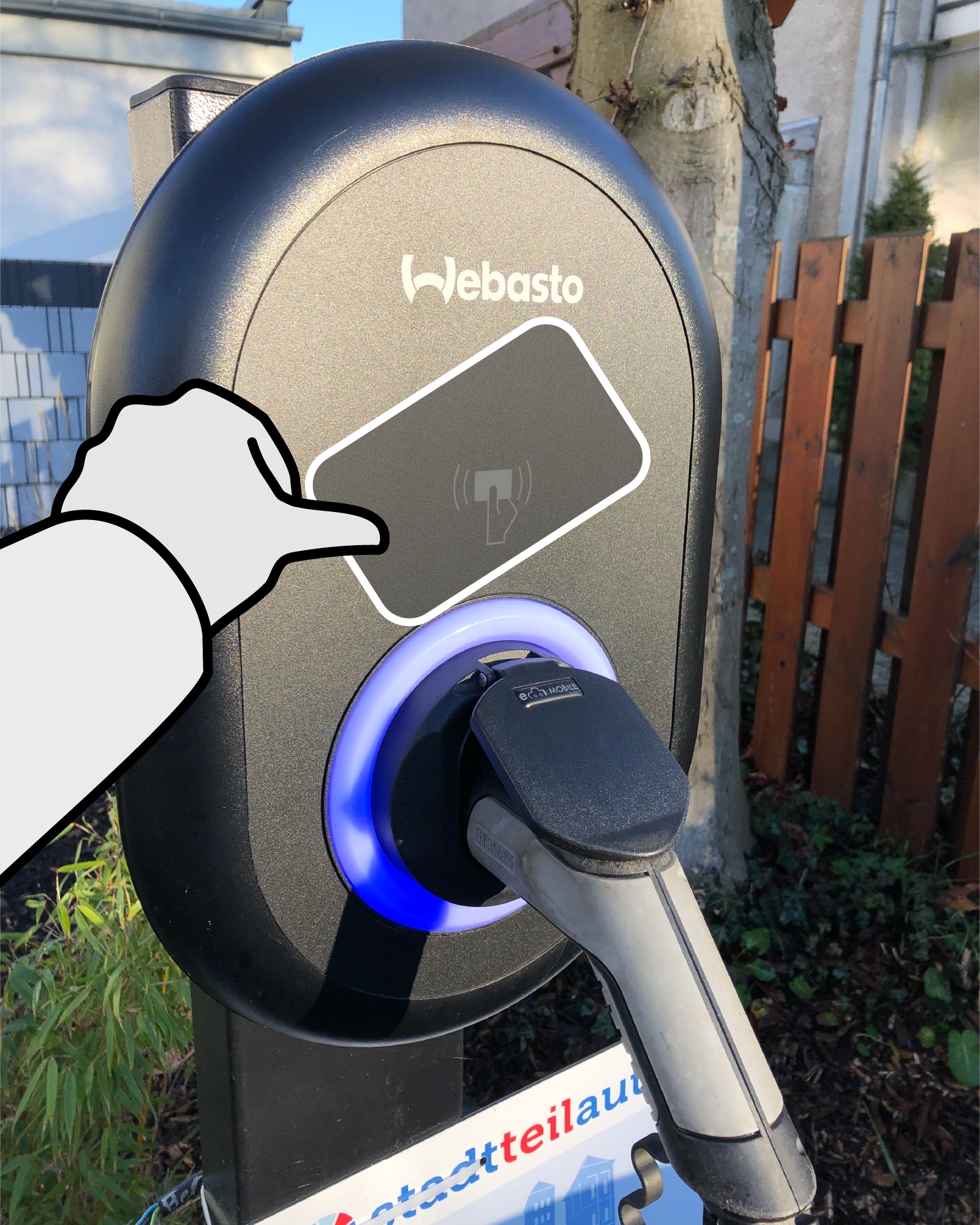Um den Ladevorgang an dieser Säule zu starten, benötigst du die Ladekarte von Webasto, die sich in der Halterung im Handschuhfach befindet.