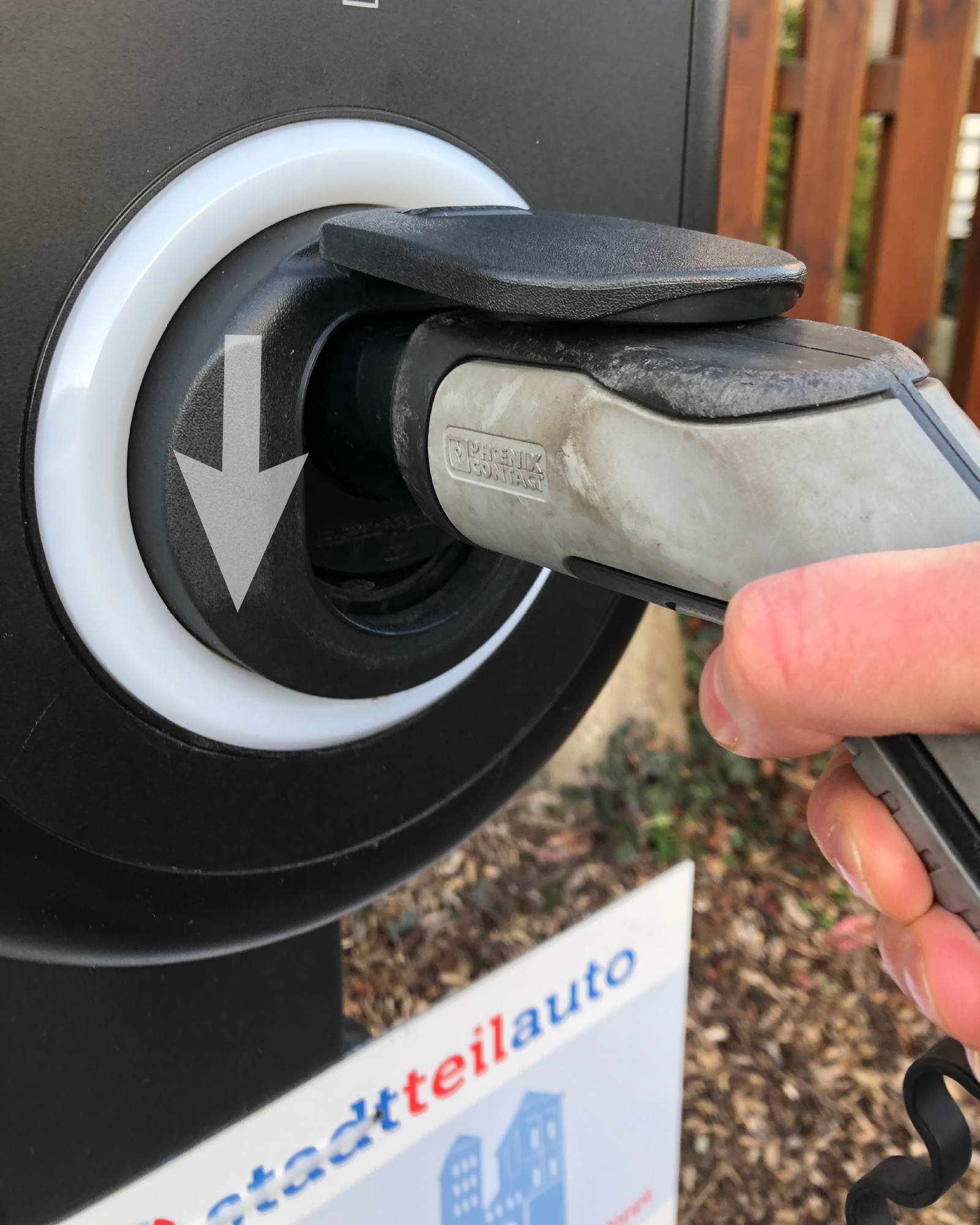 2) Löse das Ladekabel nun zuerst am Fahrzeug:
