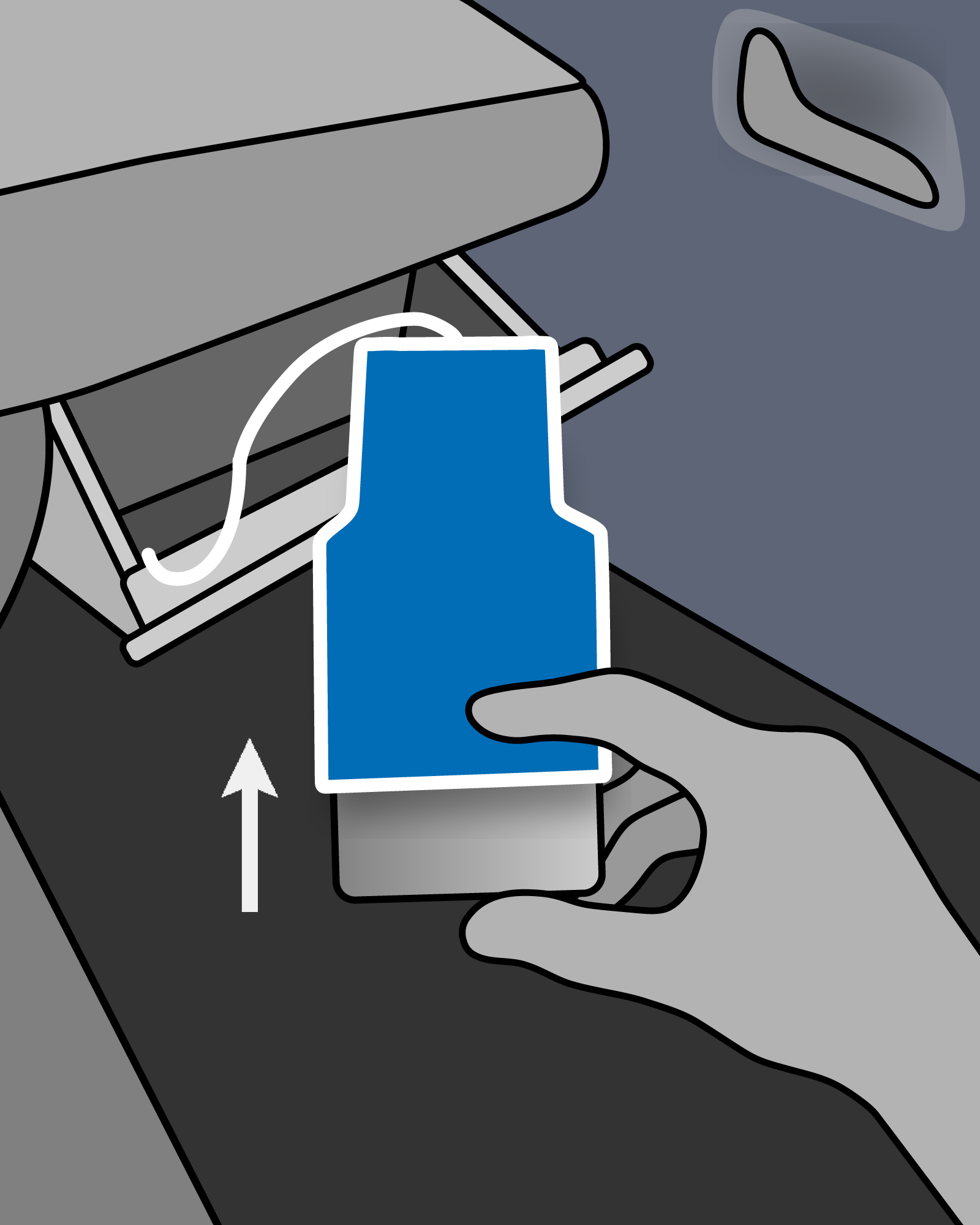 3) Setze den Stecker des Ladekabels in die Aussparung des Schiebers (hier hellblau.)