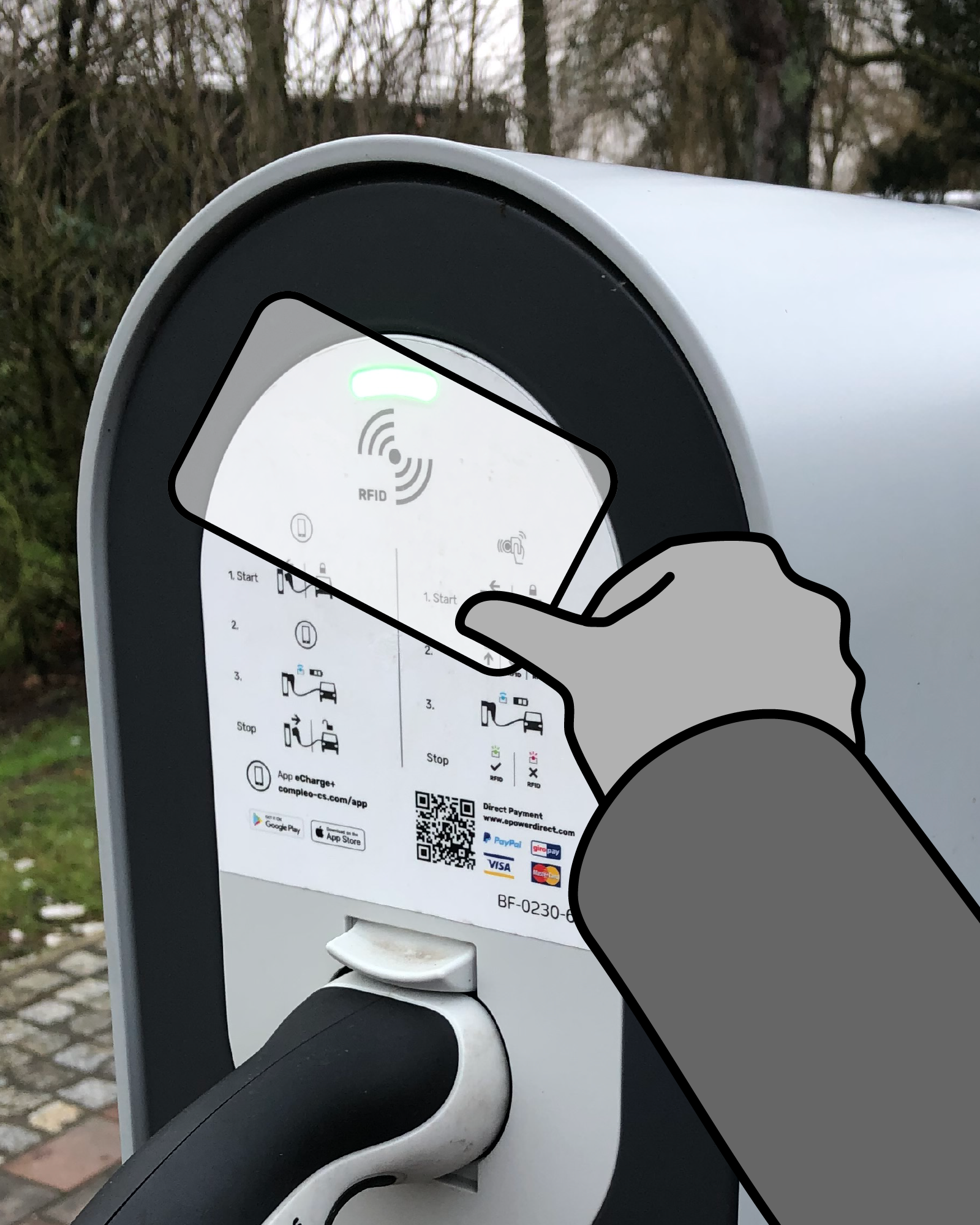 1) Halte die Ladekarte an das RFID-Feld der Ladesäule.