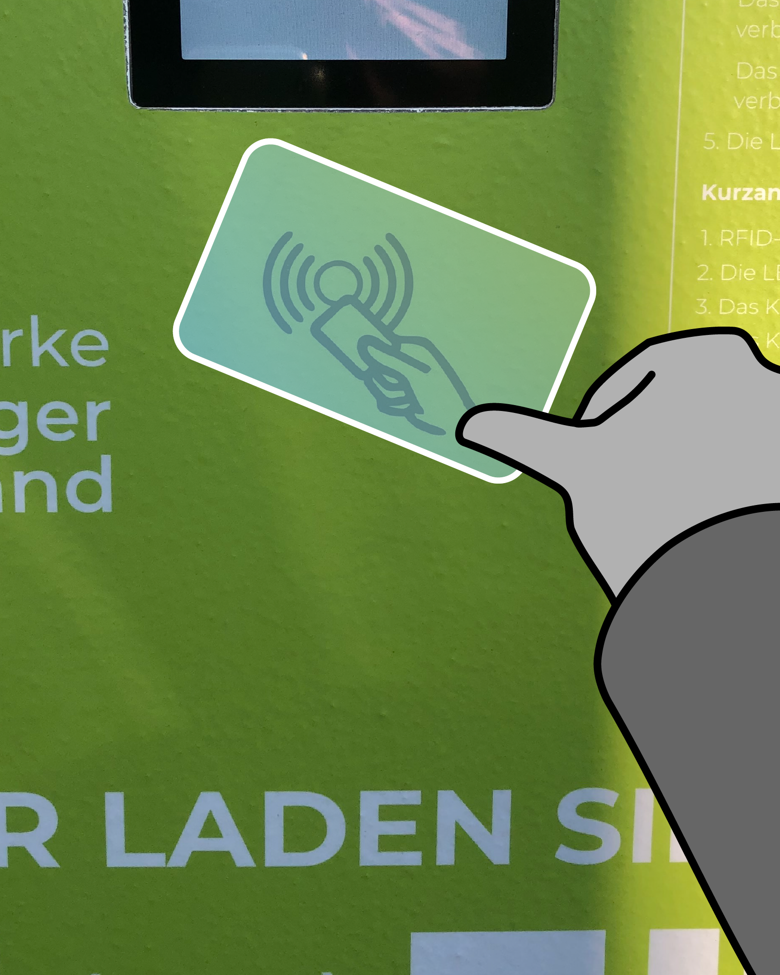 2) Halte die Ladekarte vor das RFID-Feld, um die Ladesäule freizuschalten.