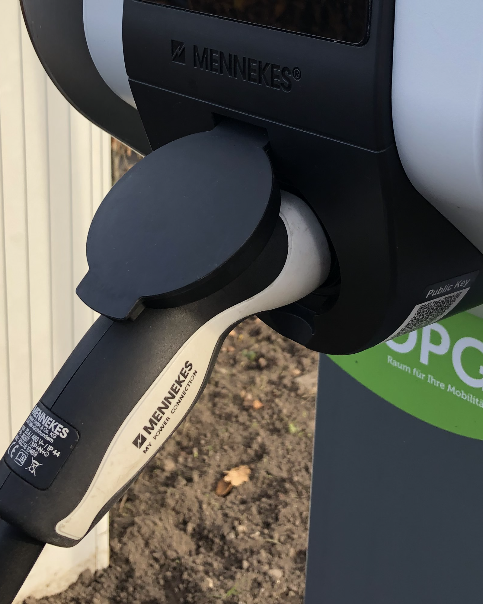 2) Verbinde das Ladekabel mit der Ladesäule.